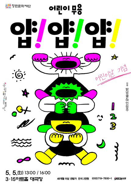 창원문화재단 3·15아트홀에서는 어린이날을 기념하여 국내 최우수 무용단인 국립현대무용단 어린이무용『얍! 얍! 얍!』을 선보입니다.